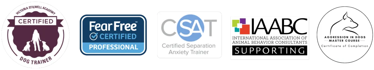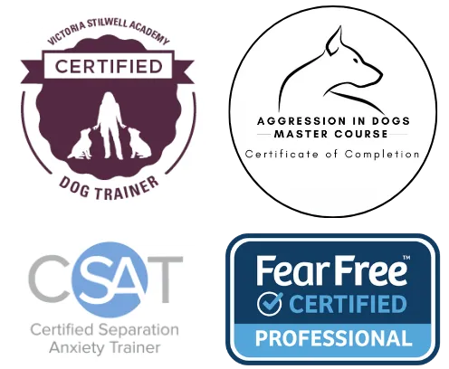 Driven by my childhood passion with a desire to heal and transform relationships between dogs and their guardians, I received my professional dog training certification through Victoria Stilwell Academy (VSA), which emphasizes science-based, positive reinforcement (R+) training techniques. I also completed specialized training in canine aggression through Michael Shikashio's "Aggression in Dogs" program, enabling me to address complex behavioral issues, such as fear, aggression, and reactivity. I am also a Fear-Free certified professional, trained to reduce fear, anxiety, and stress in pets during veterinary visits and other care experiences.